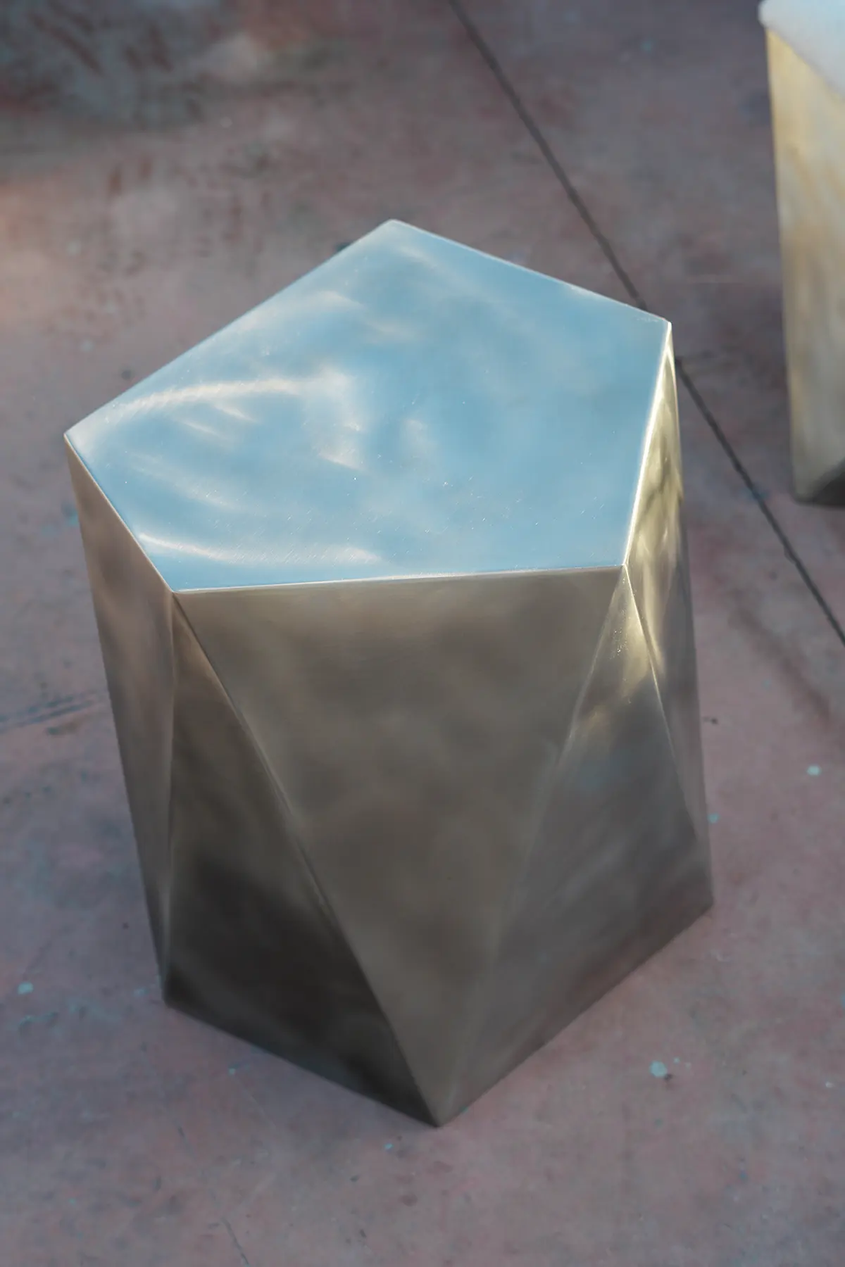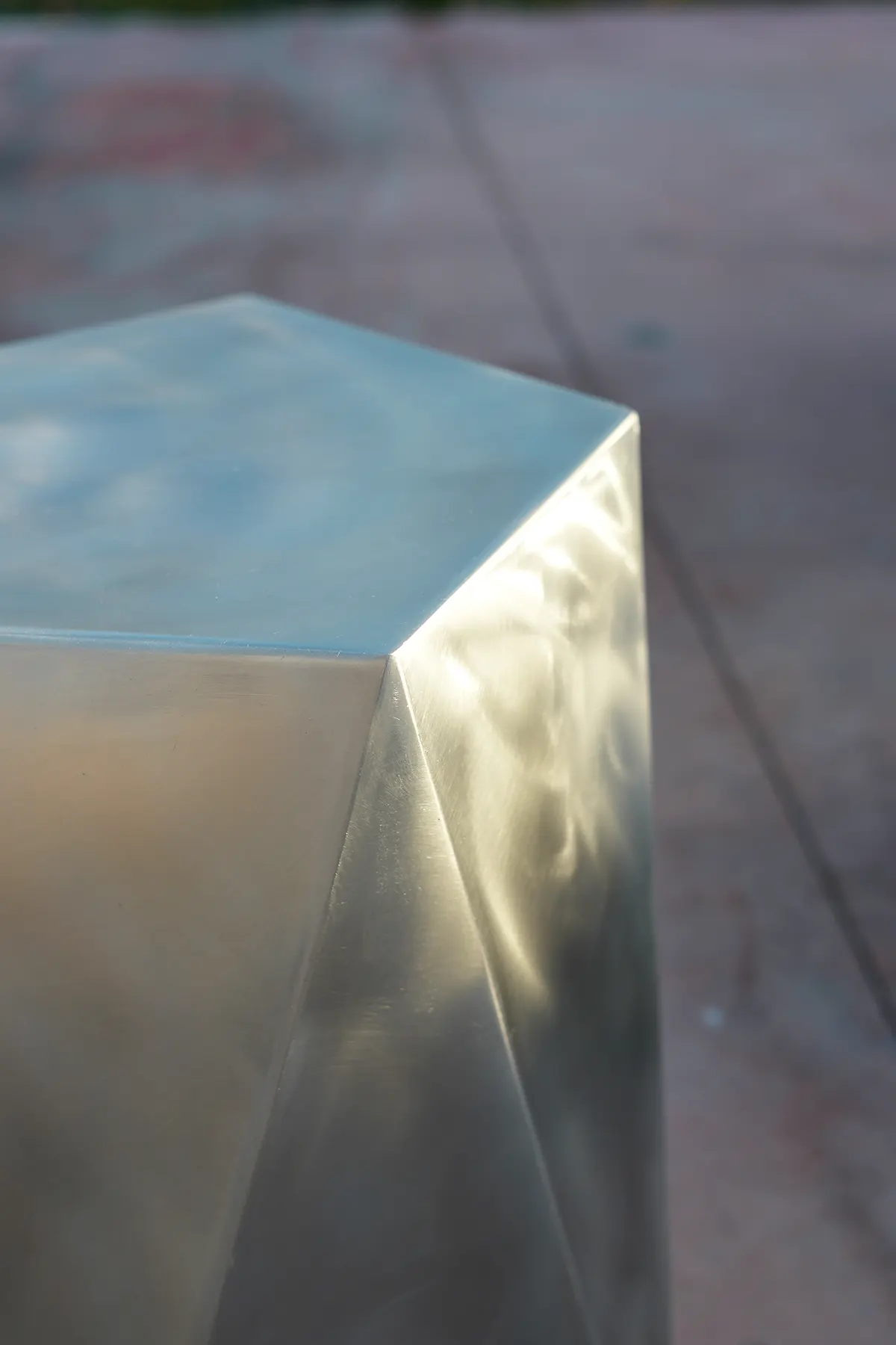 Her bir berjer, hassas kesim paslanmaz çelik panellerin ustalıkla kaynaklanmasıyla hayat bulur. Yüzeyler tamamen el işçiliğiyle son formuna kavuşturulur; bu sayede her açıdan ışığı farklı yakalayan, benzersiz dokular oluşur. Bu el yapımı dokular, her parçayı dünyada tek ve biricik (one-of-a-kind) kılarak koleksiyona derin bir karakter katar.