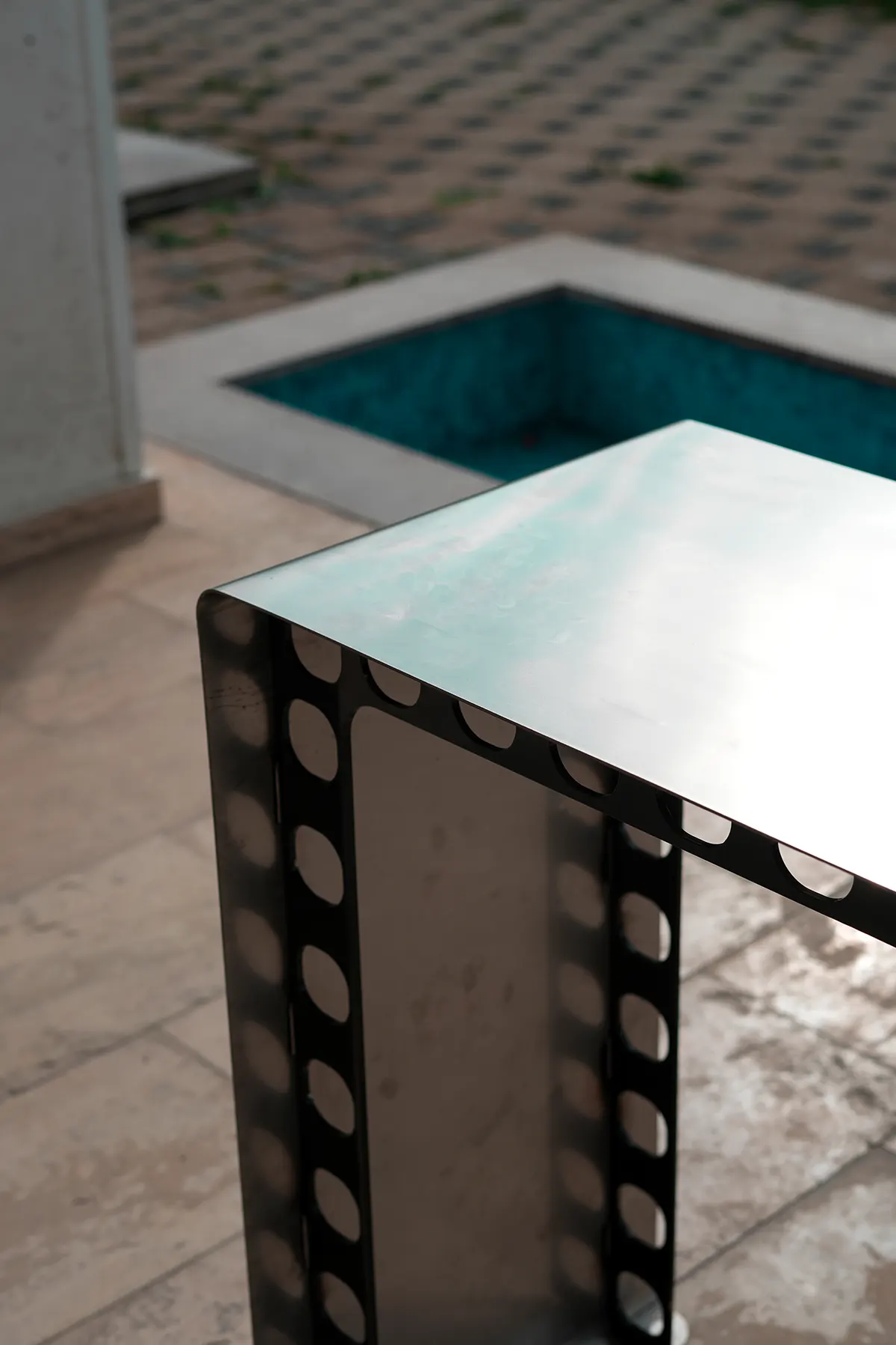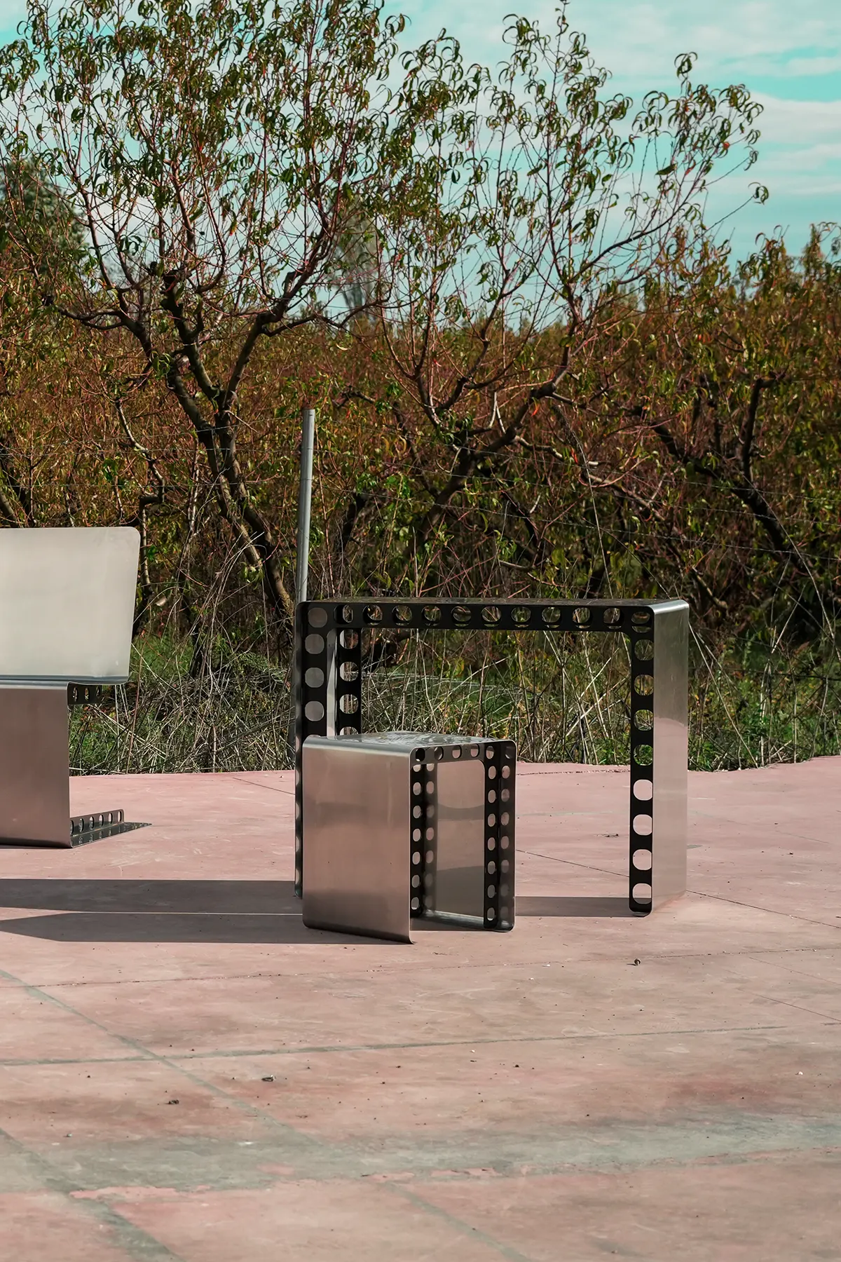 Paslanmaz çelik üzerindeki yansımaların büyüleyici dansı sayesinde her parça, çevresiyle etkileşime girerek sürekli gelişen ve değişen bir estetik sunar. Konsollardan taburelere, koltuklardan orta sehpalara kadar uzanan bu geniş yelpaze, endüstriyel dokuları modern yaşam alanlarına kusursuz bir şekilde entegre eder.