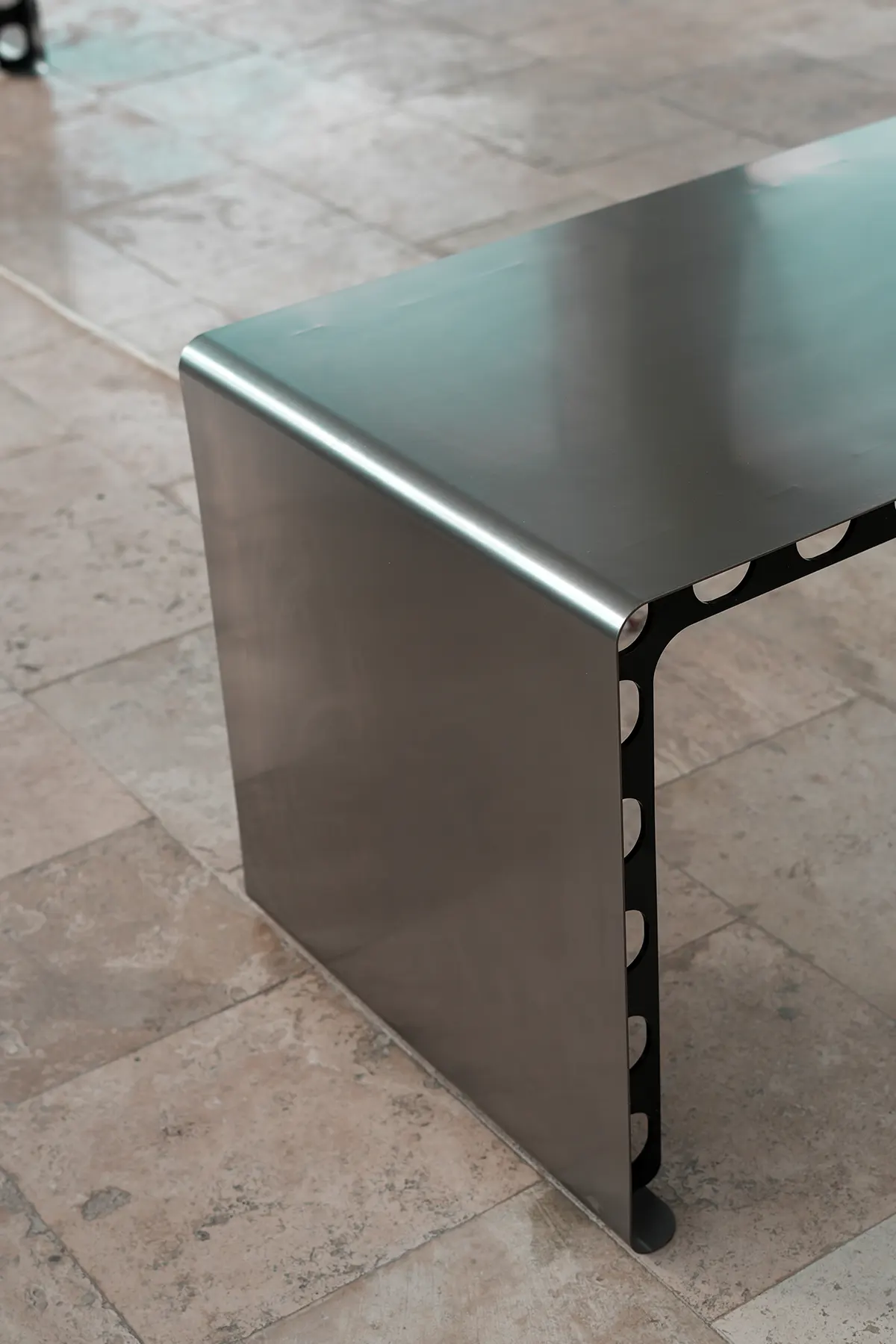Paslanmaz çelik üzerindeki yansımaların büyüleyici dansı sayesinde her parça, çevresiyle etkileşime girerek sürekli gelişen ve değişen bir estetik sunar. Konsollardan taburelere, koltuklardan orta sehpalara kadar uzanan bu geniş yelpaze, endüstriyel dokuları modern yaşam alanlarına kusursuz bir şekilde entegre eder.