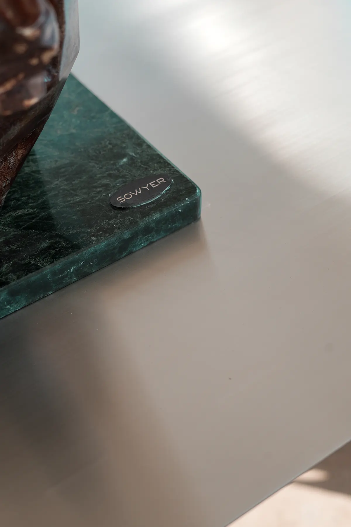 Malzeme: Antik efektli özel kaplamaya sahip paslanmaz çelik ve değerli Guatemala mermeri.